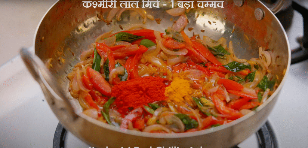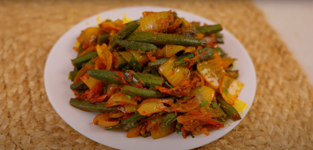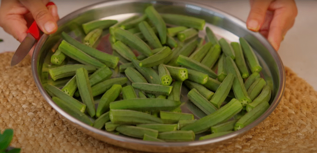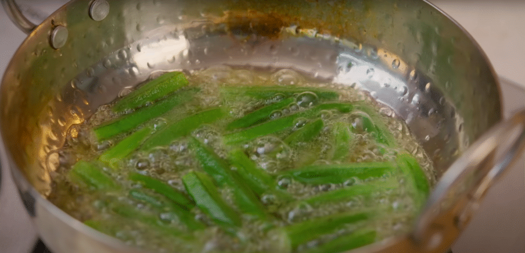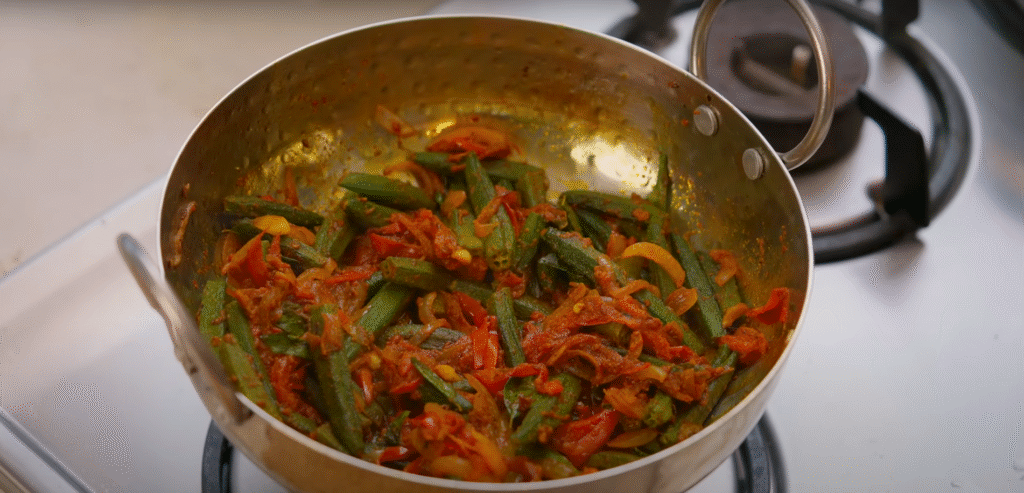 As soon as it starts to turn red, we will take it out. healthy bhindi curry without tomato