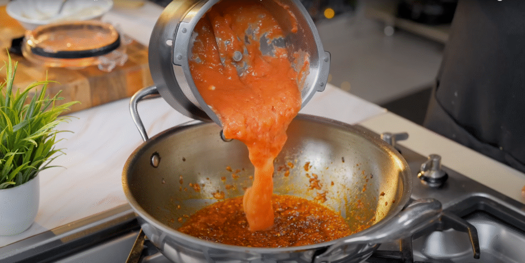 2 medium tomatoes (blended into puree — or 2 tbsp tomato paste if no tomatoes)